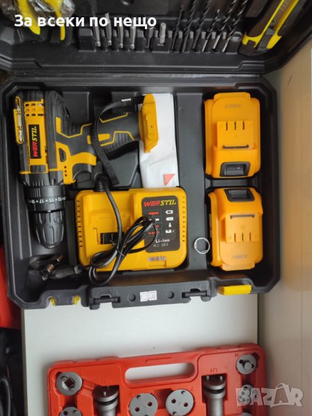 Ударно пробивен акумулаторен винтоверт в комплект с инструменти от първа необходимост .Акумулаторен винтоверт 24V - Продуктите на WERSTIL ce отличават с уникален дизайн и ергономичност. Машините WERSTIL ca отлично решение за малки по обем дейности в гаража, дома или на вилата, а и за професионална употреба, като предлагат много добро качество и технологично ниво на достъпни цени.