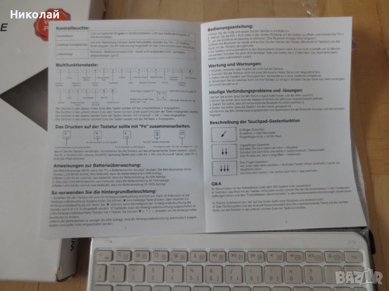 пластмаса и изкуствена кожа, Супер лек и тънък, дизайнът позволява лесна преносимост, Екологичен материал, бутон за структура на крака с ножица, достатъчно издръжлив за пътуване. Можете да го носите лесно в чанта, чанта, куфар и раница. Тази клавиатура се свързва само чрез Bluetooth и отзад можете да поставите Pencil и да го зареждате.