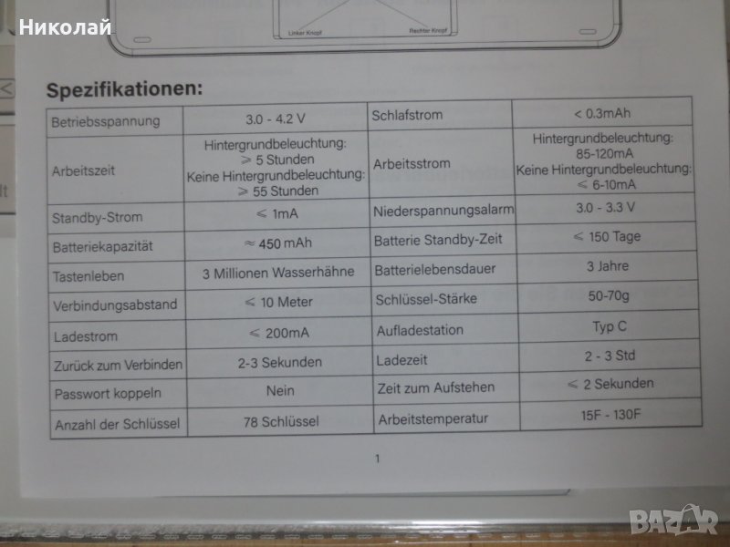 батерия , която може да удължи живота на батерията, 2-3 часа пълно зареждане, работа повече от 100 часа без подсветка, изчакване за 100 дни.