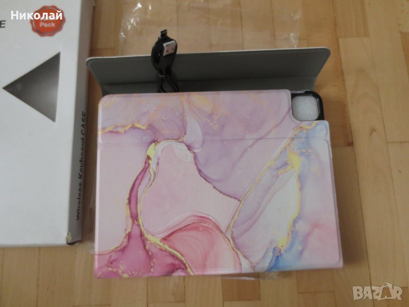 Защитният калъф е изработен от висококачествен поликарбонат и силикон Вградена най-тънка безжична клавиатура, осигурява по-бързо и по-удобно изживяване при писане. Разглобяем дизайн, защитният калъф може да се използва отделно при премахване на клавиатурата. Вградената презареждаема литиева батерия издържа приблизително 100 часа с едно зареждане, готовност 300 часа и 3-4 часа време за зареждане. Със 7 вида ефекти на фоновото осветление,готини и модерни.· Ергономичен дизайн,поддържа ъгъл на накланяне от 15 градуса, лесен за писане. С функция за тъчпад и слот за писалка TPU, тъчпадът може да се използва в IOS 13 и по-нова версия.
