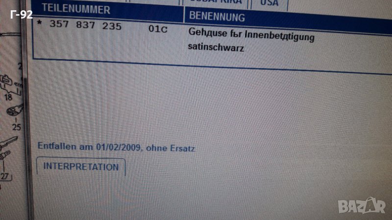 357837235/01C**NEU**VAG**VW**PASSAT**ОСНОВА ЗА ВЪТРЕШЕНАТА ДРЪШКА НА ВРАТИТЕ **