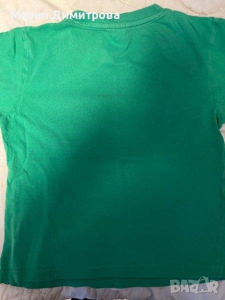 Зелена тениска Бен 10, запазена, за детенце на 5-7 г. Има малка дупчица отпред долу, снимана.