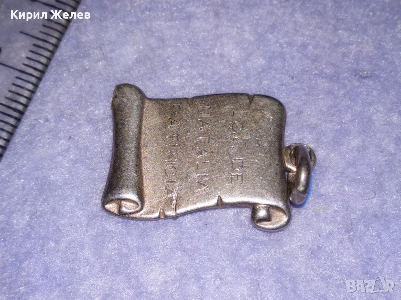 АРИСТОКРАТИЧЕН СРЕБЪРЕН ПЕНДАНТ СРЕБРО925 Свитък с НАДПИС на ЛАТИНСКИ ЕЗИК МАЙСТОРСКИ МЕДАЛЬОН 35448