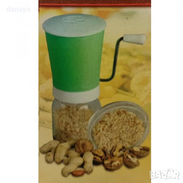 Мелачка за орехи с бурканче. Мелачката е чудесна за ядки, шоколад и бисквитки. Орехомелачка с буркан в долната част за събиране на вече смените орехи в горната си част има капак и удобна дръжка лесна за употреба. Натрошените орехи са чудесен и полезен начин да декорирате домашно приготвените сладки изкушения.