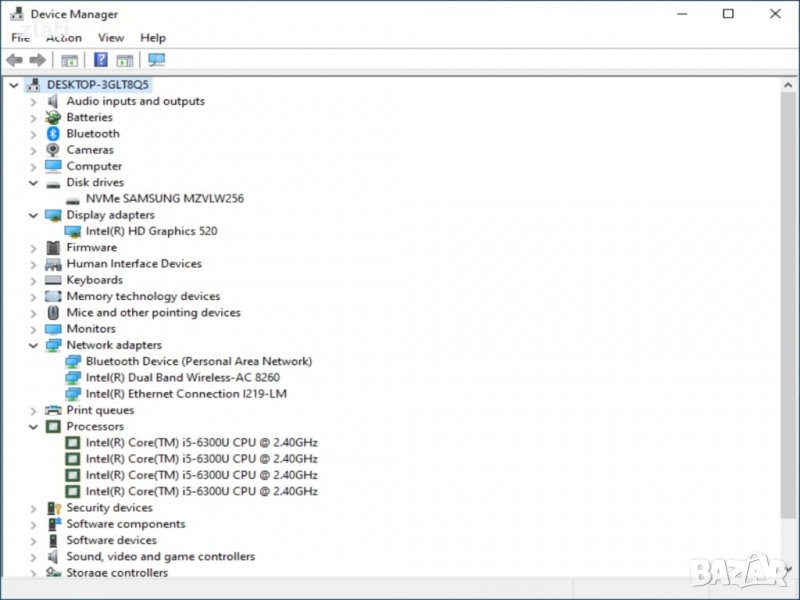 Процесор: Intel Core i5-6300U (2-ядрен, 2.4 - 3.00 GHz, 3MB кеш), Четери логически ядра