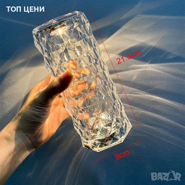 Осигурете си добро настроение и създайте чувство на уют и спокойствие с тази уникална, кристална лампа. Изработена от пластмаса, имитираща кристал тя пречупва светлината и ефекта е невероятно красив. Модела предлага RGB светлини, който можете да управлявате със сензорния „бутон“ поставен отгоре на лампата или дистанционното включено в комплекта. Само с докосване тя ще смени цвета/режима на работа като режимите, с които разполага са 4бр. Компактните и размери и вградената батерия позволяват да я използвате навсякъде, където пожелаете. Зареждането е с Type-C и е много по-бързо от обикновените mini USB. Интересен подарък за близък, роднина или приятел с повод и без.