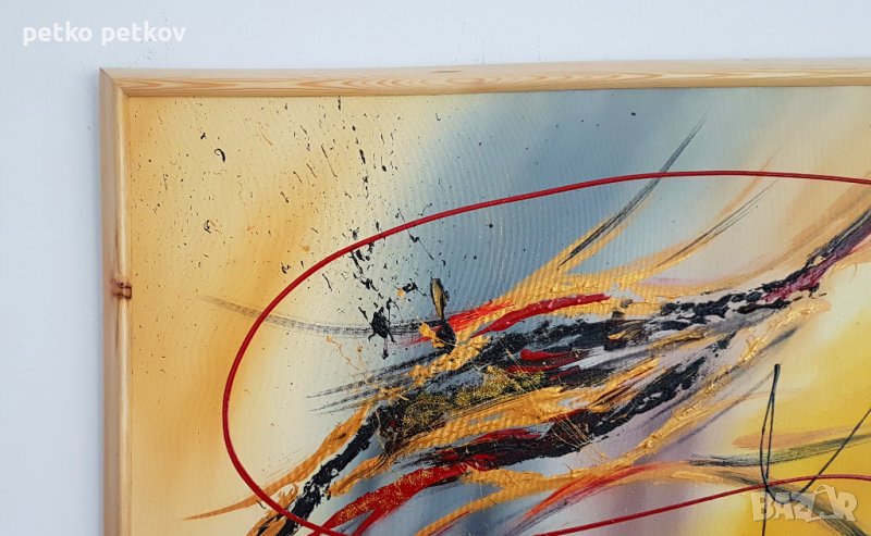 Акрил върху платно на подрамка. Собствено производство дървена рамка-уникат. Размери с рамката - 74/54 см.