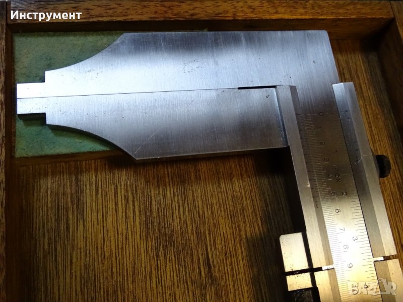 Измерителната линийка е усилена, подвижната рамка изработена от закалена неръждаема стомана с профилирани водещи повърхности и механизъм за микрометрично преместване.