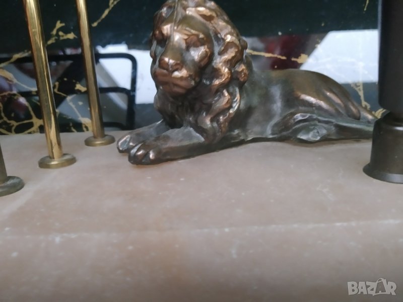 стар пенал,мраморна основа ,метална статуетка на лъв,визитник,поставка за химикал.