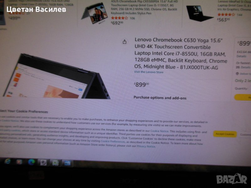 Lenovo Chromebook C630 Yoga 15.6" UHD 4K Touchscreen Convertible Laptop Intel Core i7-8550U → Обява 39326318