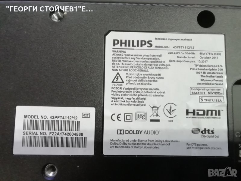 PHILIPS 43PFT4112-12 СЪС СЧУПЕН ДИСПЛЕЙ → Обява 39328731