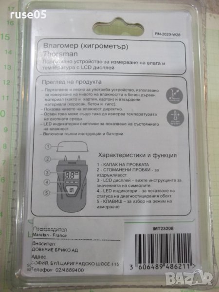 "IMT23208" може да се използва за измерване на нивата на влага в дървен материал ( също хартия , картон ) и втвърдени материали ( хоросан , бетон и мазилка ) . Той директно отразява нивото на влажност . Освен това може да измерва и околната температура . Той има три светодиода , които се използват за индикация на състоянието на влага на тестовия обект . Хигрометърът "IMT23208" е преносим и много лесен за използване.
