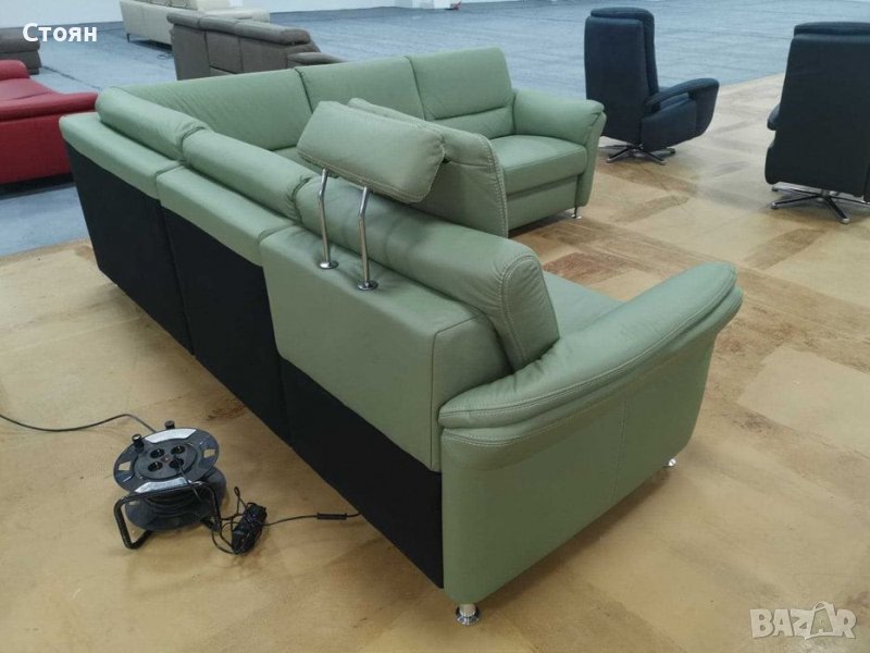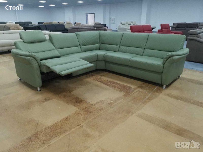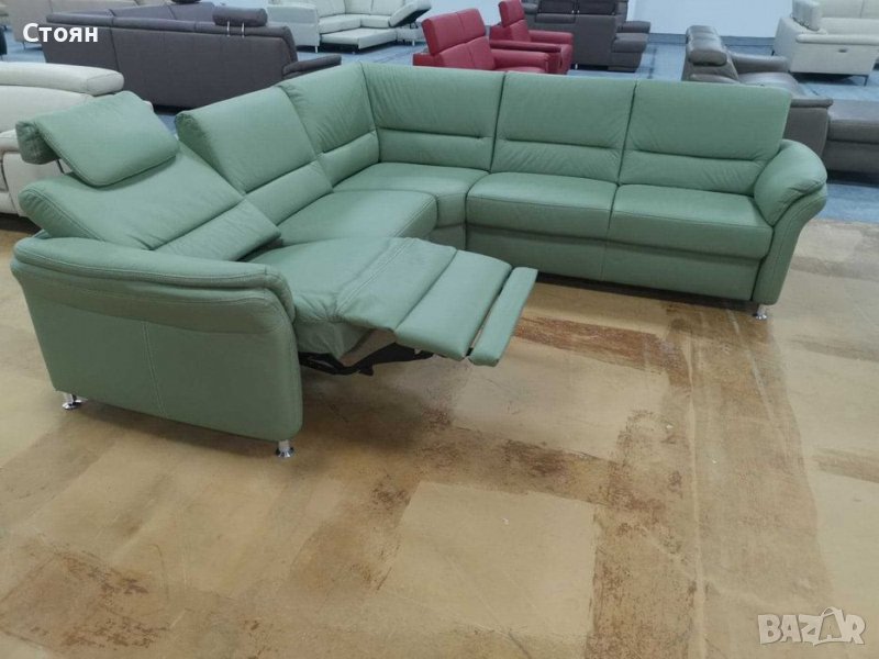 Ъглов диван цвят Минт "Dale" с релакс механизъм - ест кожа → Обява 39330758