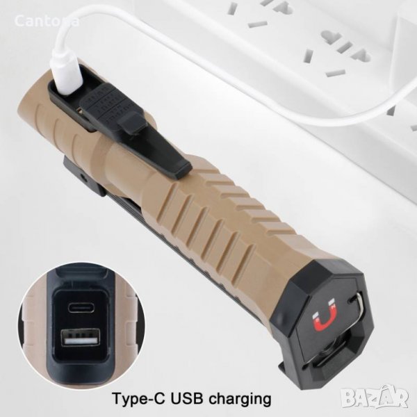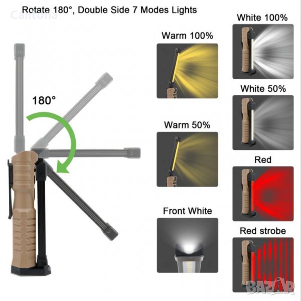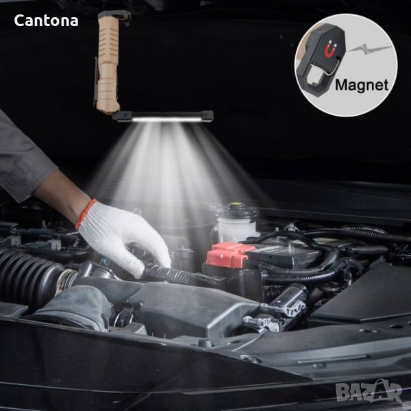 Тази работна лампа с магнит е изработена от висококачествен ABS материал, против изпотяване и противоплъзгане, удължава живота на лампата. Този преносим led фенер е компактен и лесен за носене. Размерът на сгъваемата работна лампа е 4,4*23,3 см, която може да се постави в чанти за съхранение, кутии за инструменти, раници. Това е идеален работен фенер за къмпинг на открито, ремонт на автомобили или охранителна лампа.