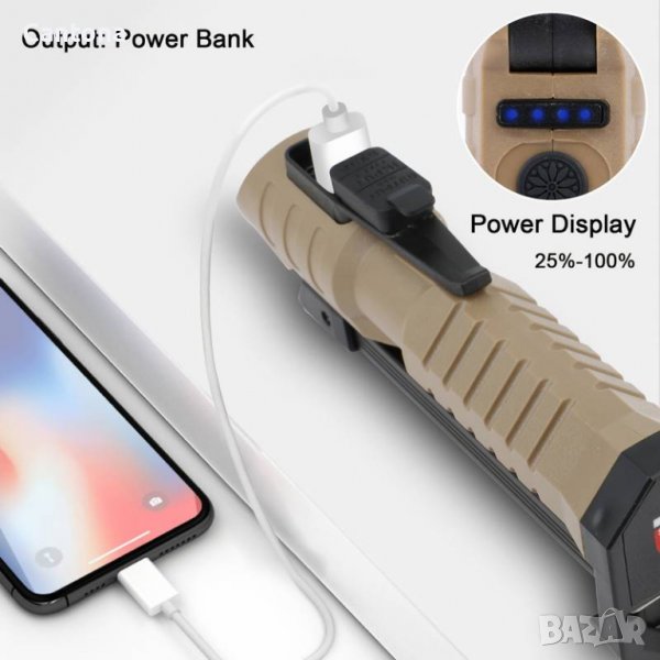 Многофункционалнa работна, къмпинг, аварийна и настолна лампа с магнит, кука, Power Bank, Type C зареждане, 7 режима на светене.