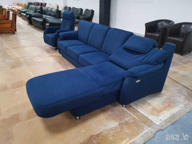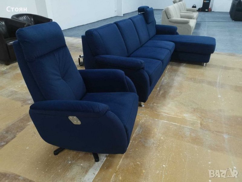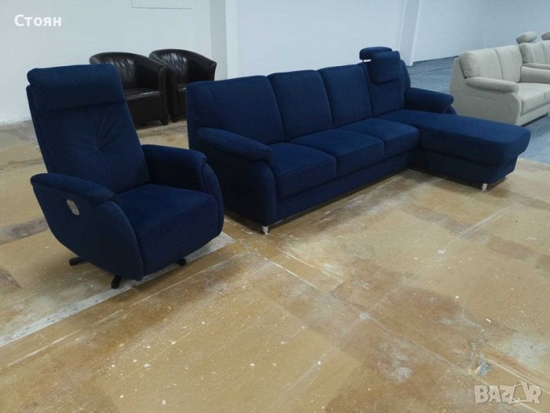Нов Син ъглов диван и фотьойл релакс "Tyler" от плат