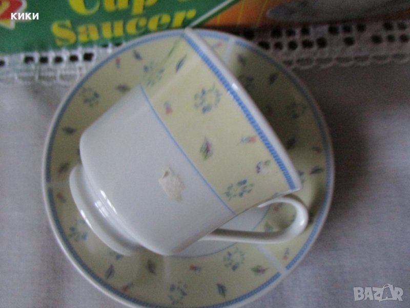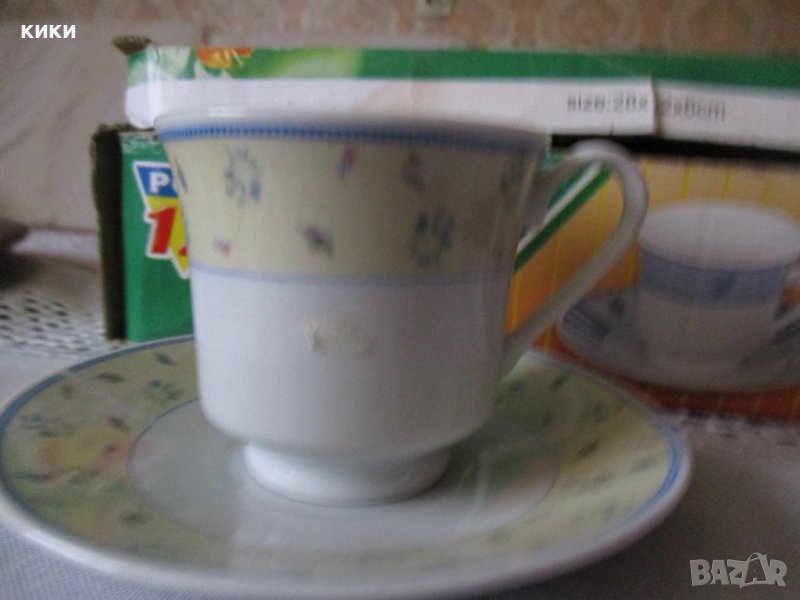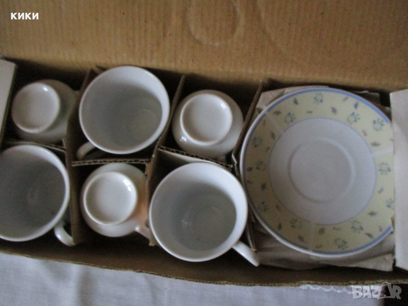 Сервиз кафе 12 части - порцелан- 15 лв НОВ бледо жълто и синьо