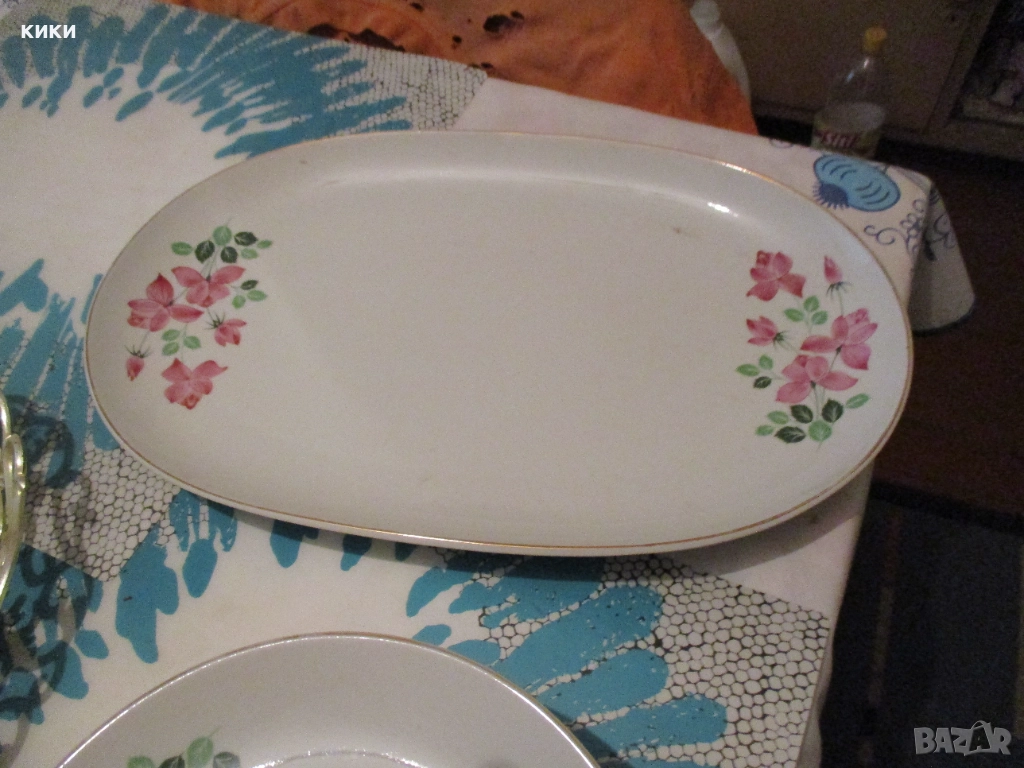 Плато порцелан бяло с розови цветя голямо - 25 лв