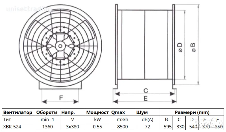 Присъединителен размер: Ф540 (фланец)