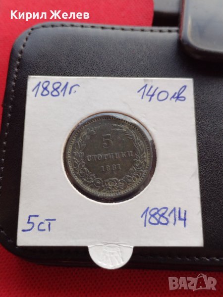 РЯДКА МОНЕТА 5 стотинки 1881г. КНЯЖЕСТВО БЪЛГАРИЯ УНИКАТ ПЕРФЕКТНО СЪСТОЯНИЕ ЗА КОЛЕКЦИОНЕРИ 18814