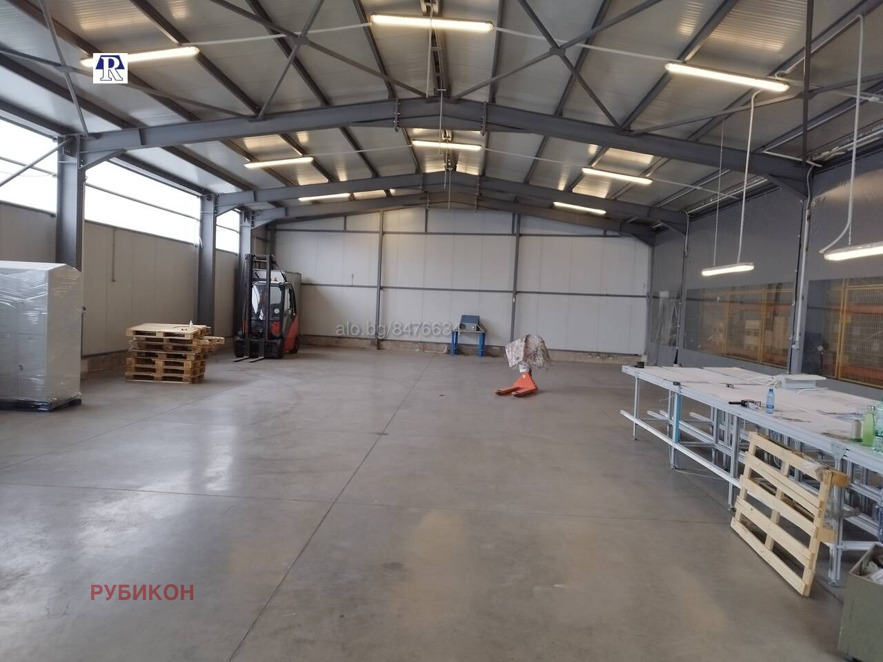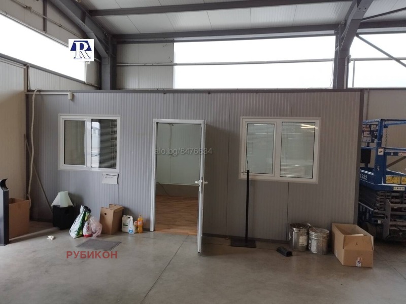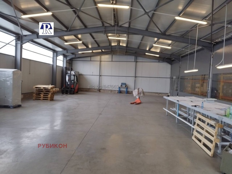 Отлична локация и комуникации в непосредствена близост до основни пътни артерии! Ново производствено-складово хале, с метална конструкция и термопанелни стени. Отговаря на всички европейски изисквания: под шлайфан бетон, автоматизирани врати, естествено осветление и луминисцентни осветителни тела, системи за пожарна безопасност: пожарогасене и известяване, санитарни възли, височина 8м. Други опции: ТИР достъп, паркоместа за клиенти и персонал. Офис с баня и тоалетна. Фирма Рубикон разполага с над 500 оферти за отдаване под наем на складове и промишлени помещения с различни площи и локация в Пловдив и област Пловдив! Massive, guarded warehouse(storehouse) with office space. Access is via boulevard with outdoor parking and landscaped areas. There are convenient track approach, operating systems for security, fire. The warehouse has a large area of 290 m2. The height is 8 m. Office area and sanitary unit. The status is of a storage for industrial goods. Floor - polished concrete. The warehouse is located in the north industrial zone of Plovdiv. The location is very convenient, with easy access. Rental price - 2200BGN. Rubikon real estate suggest more than 500 offers of storehouse(warehouse) for rent in Plovdiv region!