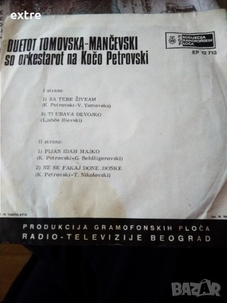 Duetot Tomovska - Mančevski* So Orkestarot Na Kočo Petrovski* – Za Tebe Živeam EP 12713, снимка 1 - Грамофонни плочи - 39334345 Duetot Tomovska - Mančevski* So Orkestarot Na Kočo Petrovski* – Za Tebe Živeam EP 12713, снимка 2 - Грамофонни плочи - 39334345 1/2