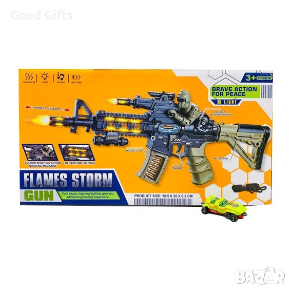 Картечницата е изработена с грижа и внимание към детайла за перфектни резултати. Вашето дете ще се забавлява часове наред с тази играчка.