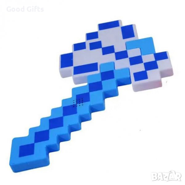 Светеща брадва Майнкрафт. Играчка Minecraft брадва пиксел от известната детска игра Minecraft. Когато е включена, диамантената брадва свети и симулира звуците на битката.
