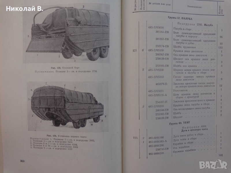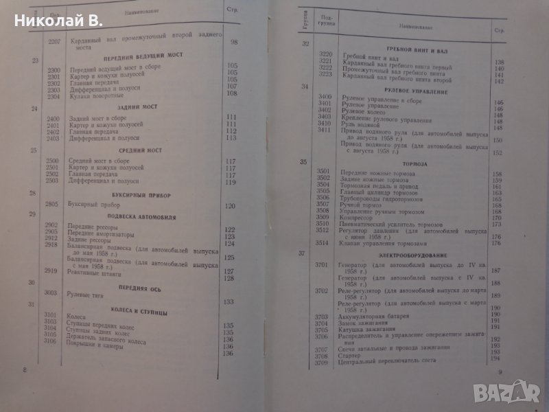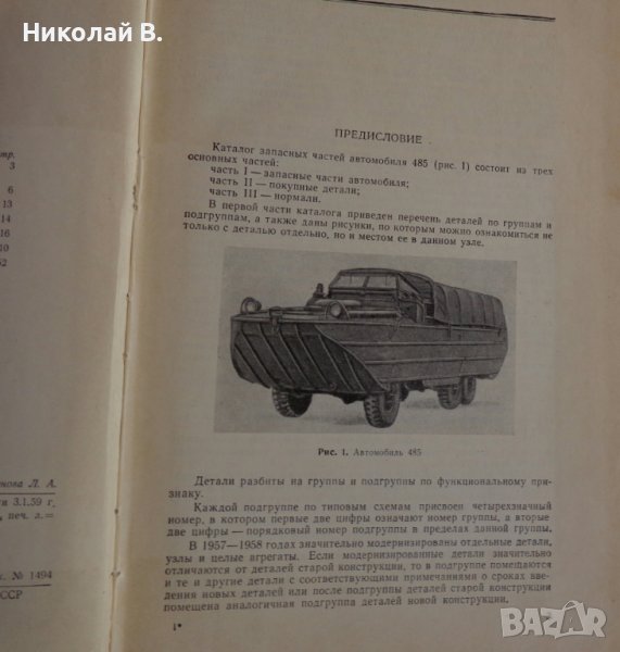 Книга каталог Детайли автомобил 485 на базата (ЗиЛ 157) на Руски език формат А4 Москва 1959 год. → Обява 39337589