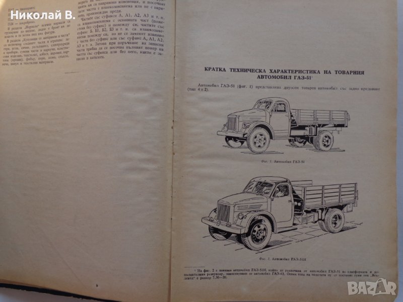 Продавам употребявана но запазена книга Каталог на запасните части на Автомобилите ГаЗ издание на МНО ДВИ 1960 година. формат А 4 в Каталога има данни за следните модели автомобили ГаЗ 51, 63, 63А, 12 ЗиМ, М-20 Победа, 69, 69А, 46, Съдържа 758 страници.