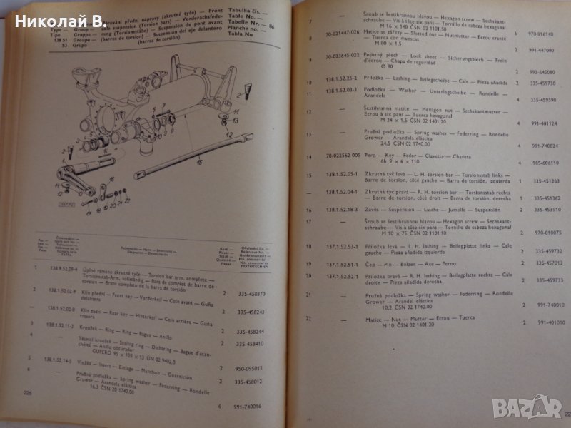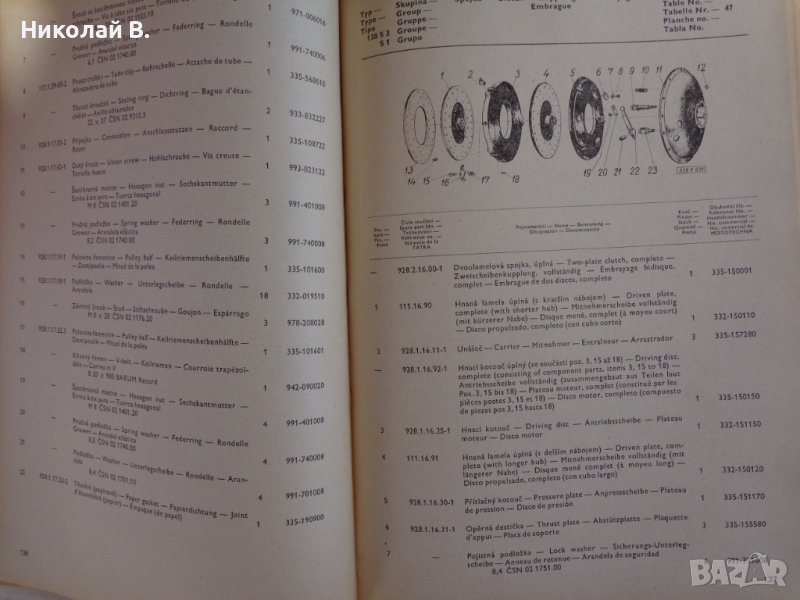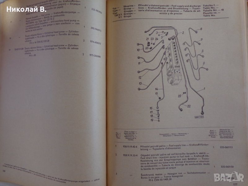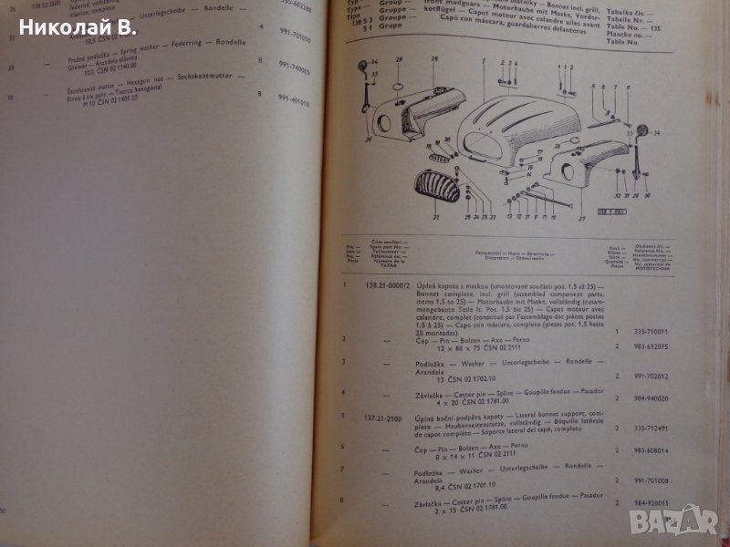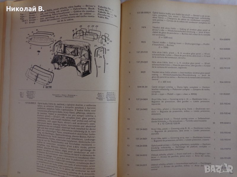 Продавам употребявана но запазена книга Каталог на Части за Татра ( TATRA ) 138 S1, 138 S3 формат А 4 на Чешки, Английски, Немски, Изпански език. Книгата съдържа 520 страници.