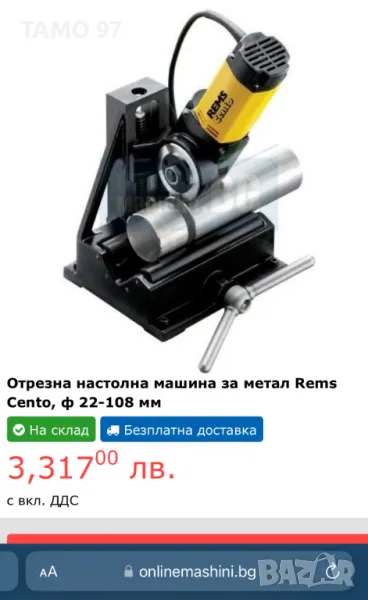 Продавам електрически тръборез на Ремс до Ф110мм, машината е в отлчино визуално и техническо състояние, но липсва настолната стойка и цената за това е толкова, съобразена е с липсата на стойката. Оригинално немско производство внос от Франция. Пращаме с опция преглед и тест с куриерска фирма еконт може и лично предаване за гр. Шумен. Магазинската цена е: 3 317лв.