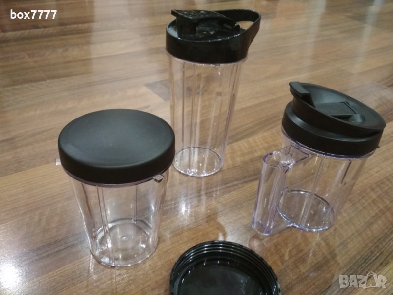 Неизполвани, нови кутии за смути, сок, супа, храна. Капаците са с отвор за сламка. Има и два капака без отвори. И четирите са уплътнени с с гумичка, за да няма изтичане. Два броя са с височина 12 см, високият е 17 см.