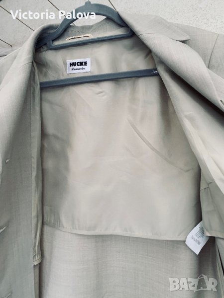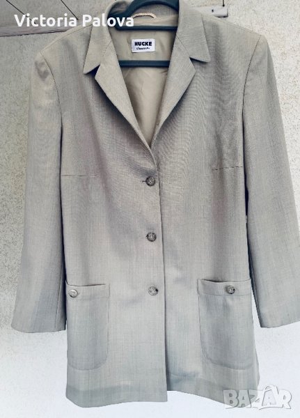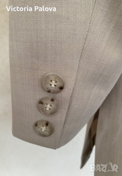 Идеална кройка-структурирано рамо,леки подплънки,право,със странични цепки(18см),красиви копчета,нюдов неутрален цвят.рамо-48см,ГО-60см,дължина-80-81см,ръкав-60см.сакото подхожда за пролет-лято-не е тежко,подплатата му е само в раменната част,състав:вълна,полиестер,еластан.