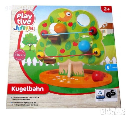 Дървена играчка - цветно ябълково дърво с 3 дървени топчета и лабиринт. Развива фината морорика и координация.