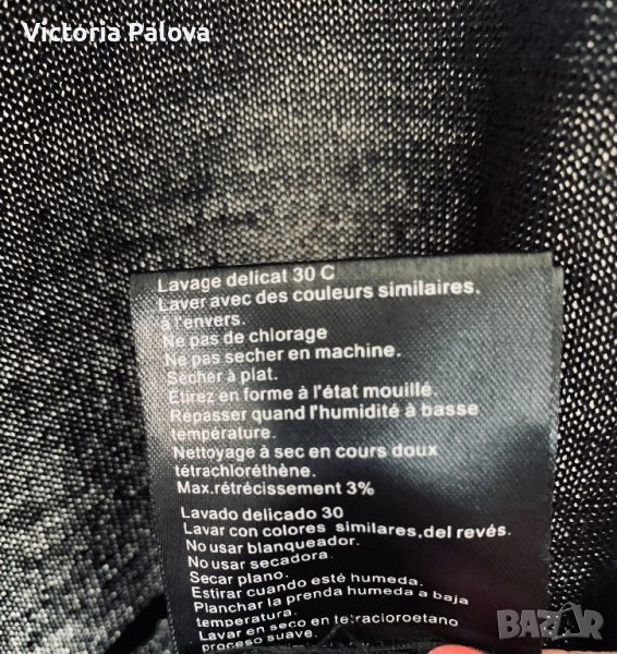 NÜ-моден дизайн,изразен в привлекателния гламурен уникален стил.”NÜ”на френски е “гола”,а на китайски “жена”-и това прекрасно съответства на представата на дизайнера за създадения му стил-просто,натурално,етично.жилетката е “гола”-като паяжина е,много ефектна и приятна на допир-50%вълна,50% полиамид-пада красиво.дълга е 115см,рамо-46см,ГО-52см,ръкав-64см.