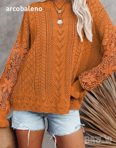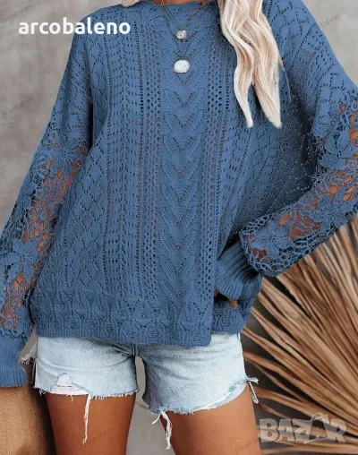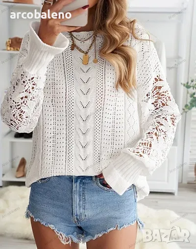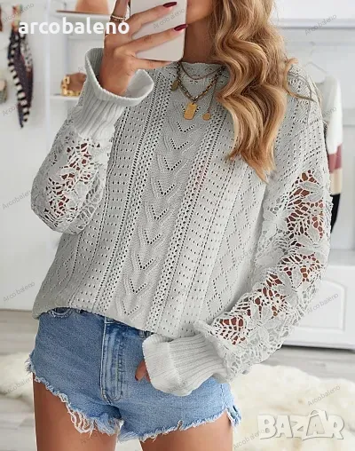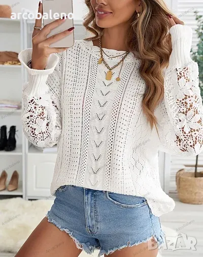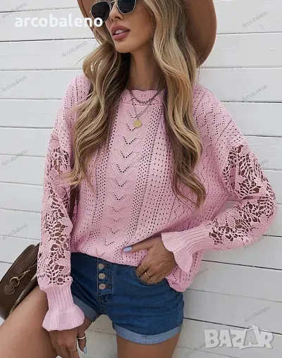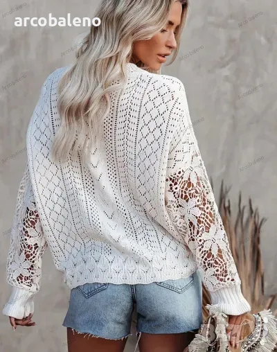 Подобрете пролетно-летния си гардероб с този дамски пуловер с изрязани венчелистчета с дълги ръкави. Изработена от леко еластична плетена материя, тази горна част с плътна шарка се отличава със сложни плетени детайли на ръкавите, съчетаващи елегантност с небрежен стил. Перфектен за спокойни излети или шикозни събирания и е готов да бъде любимец в социалните медии.