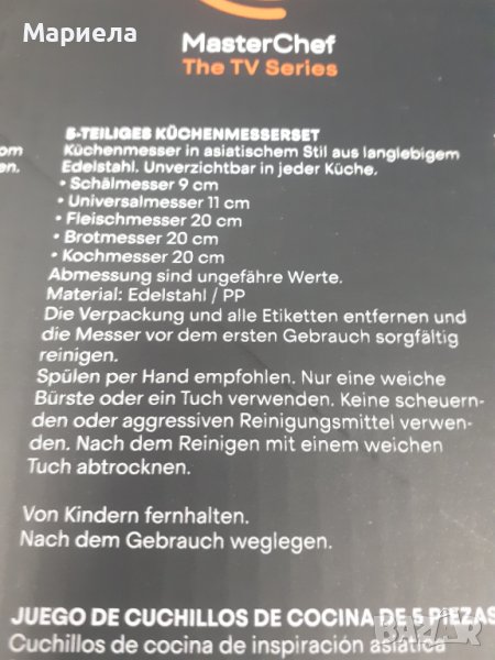 ОФИЦИАЛЕН ПРОДУКТ MASTERCHEF - Този комплект ножове в японски стил с професионално качество от 5 части е официален продукт на телевизионния сериал MasterChef, проектиран във Великобритания.