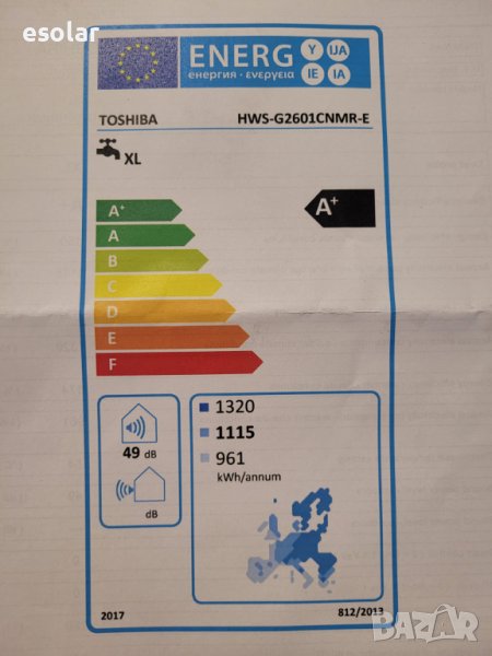 - Справка: TOSHIBA - ESTIA - HWS-G2601CNMR-E - 260 литра