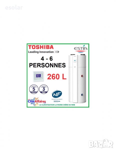 Термодинамичен/термопомпен бойлер TOSHIBA - ESTIA - MONOBLOC - HWS-G2601CNMR-E (260 L) А+ За битова гореща вода: Моноблок термодинамичен резервоар