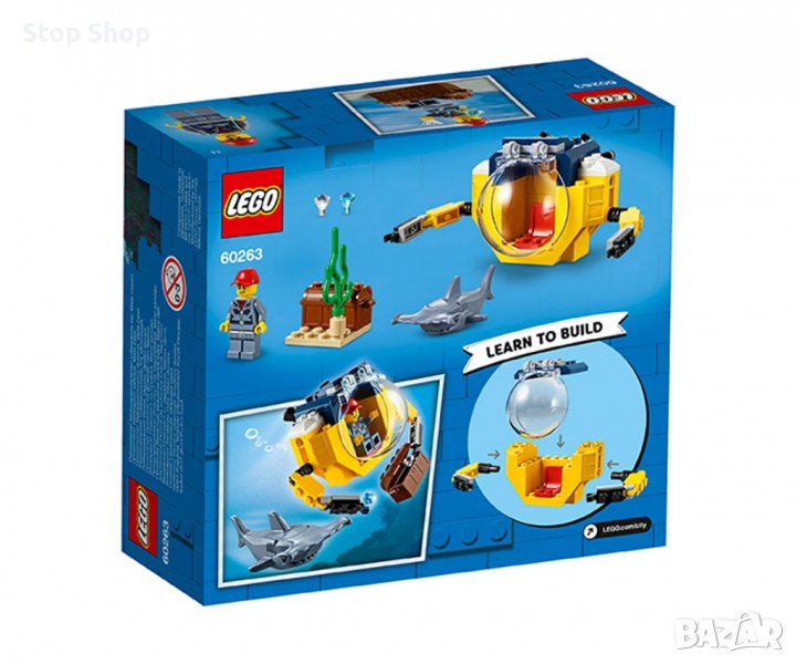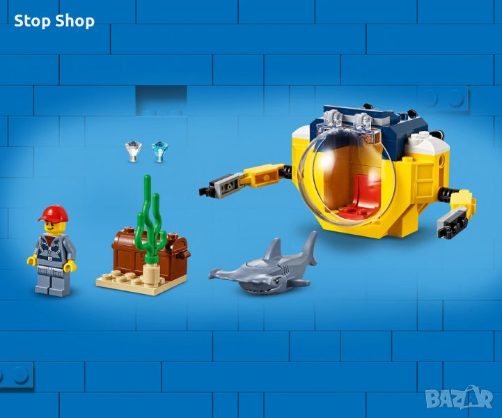 Открийте тайните на морето с чудесната океанска миниподводница от LEGO® City. Отворете купола на кабината за екипажа на миниподводницата и се спуснете в морските дълбини. Какво в това? Стар сандък със съкровище! Маневрирайте с витлото, докато подводницата застане над него, и използвайте щипките, за да захванете и изтеглите диамантите. Но внимавайте – акула чук обикаля около подводницата. Още един незабравим ден за океанските изследователи от LEGO City!
