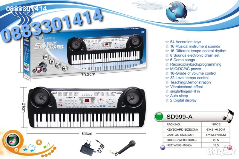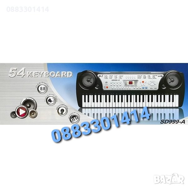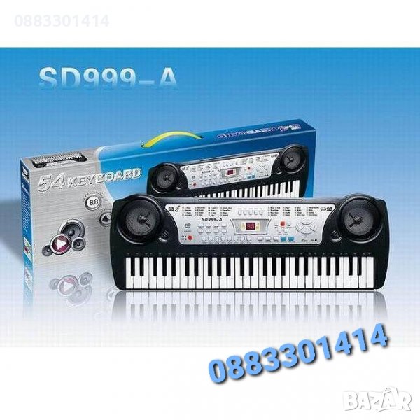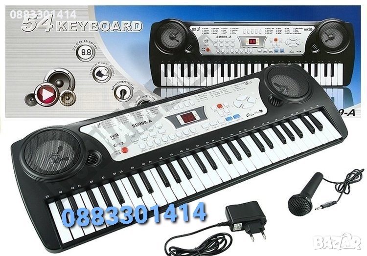 Детски синтезатор с LED екран, микрофон, 54 клавиша, тонколони и множество функции: