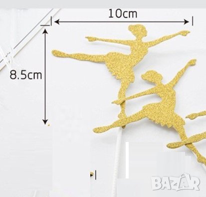 Балерина с вдигнат крак картонен златист топер украса декор за торта мъфини парти декор балет, снимка 1 - Други - 39348556 Балерина с вдигнат крак картонен златист топер украса декор за торта мъфини парти декор балет, снимка 2 - Други - 39348556 1/2