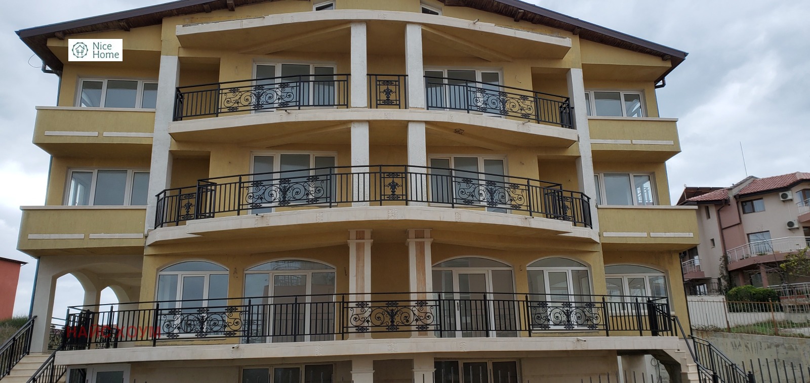 Агенция за недвижими имоти ' Найс Хоум' предлага на своите клиенти чудесен хотел с гледка към плажа. Имотът се намира в непосредствена близост до морската ивица. Местността, в която е хотелът се казва ' Буджака'. Разпределението е следното:1. последен етаж - два отделни апартамента с бани и кухненски бокс. Опасваща тераса