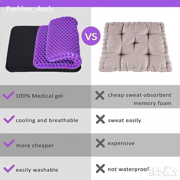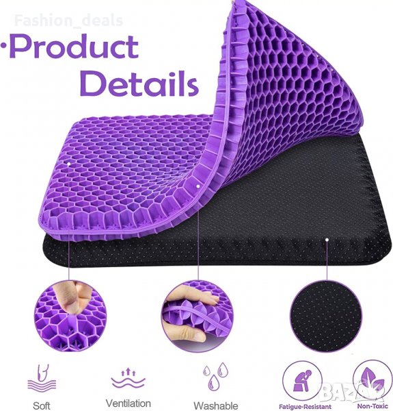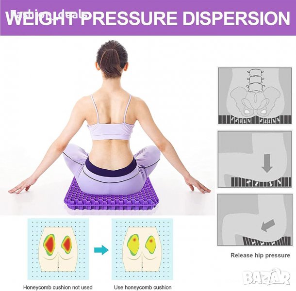 Комфортният гел и дизайнът на пчелна пита увеличават циркулацията на въздуха, което осигурява перфектна опора при продължително седене