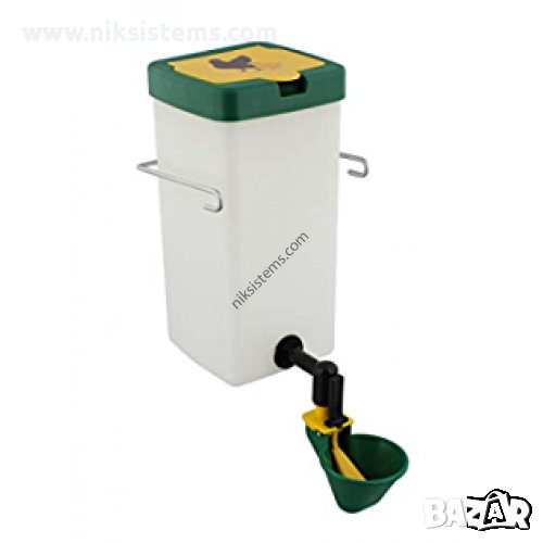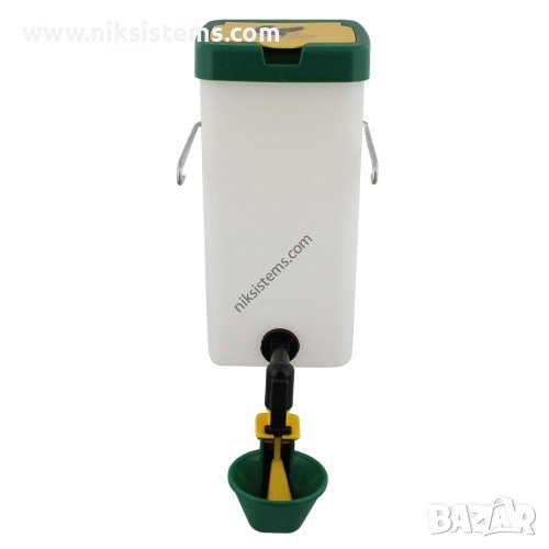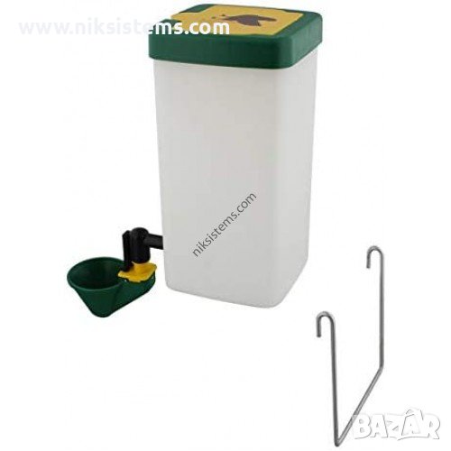 Тази поилка се използва за поене на птици. Съдържа пластмасов резервоар с шарнирно отварящ се капак, в основата автоматична поилка за птици. Чашата за пиене се пълни с вода и веднага щом поплавъкът започне да плува, захранването с вода се затваря. С този прост подход вашите птици лесно се ориентират и винаги ще имат достатъчно вода за пиене. Благодарение на поцинкованата метална скоба, тази поилка може да се монтира на всякакъв вид мрежа, решетка или клетка. Скобата към комплекта дава възможност да регулирате височината на монтаж, като същевременно може да бъде поставена отвън или отвътре в клетката. Поилка не позволява изтичане на вода и запазва пода сух. Изработен от удароустойчива пластмаса с европейско качество, като предвидения полупрозрачен цвят на контейнера улеснява следенето на количеството вода в него. Пълненето на резервоара става отгоре, през подвижен отваряем капак. Предимството на тази поилка е капацитетът за съхранение на вода от 1 литър, предотвратява изтичане на вода и също така е лесна за почистване и пълнене. Не позволява замърсяване на водата, така че успешно се използва за прилагане и на лекарства и лечения във вода на птици.
