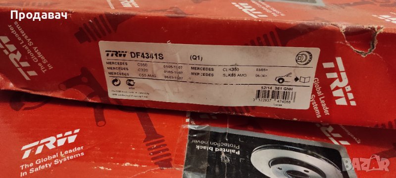 Здравейте. Продавам 2 броя чисто нови дискове TRW 345мм за Mercedes/Мерцедес. В комплект с накладки Bosch. Цената общо е 300лв и е крайна. Намират се в София. Стават със сигурност за C32 AMG, C55 AMG, SLK55 AMG, W203 C320, C350, CLK350.