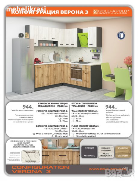 * В посочената цена Не са включени термоплот, термогръб, мивка, смесител, електроуреди и аксесоари.