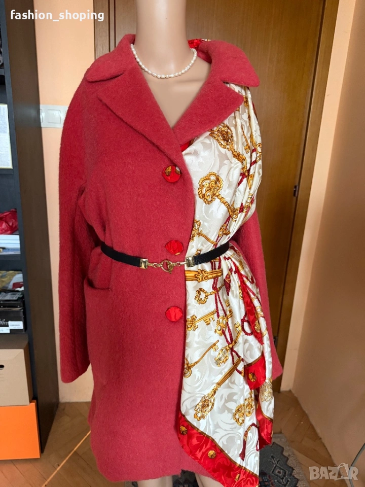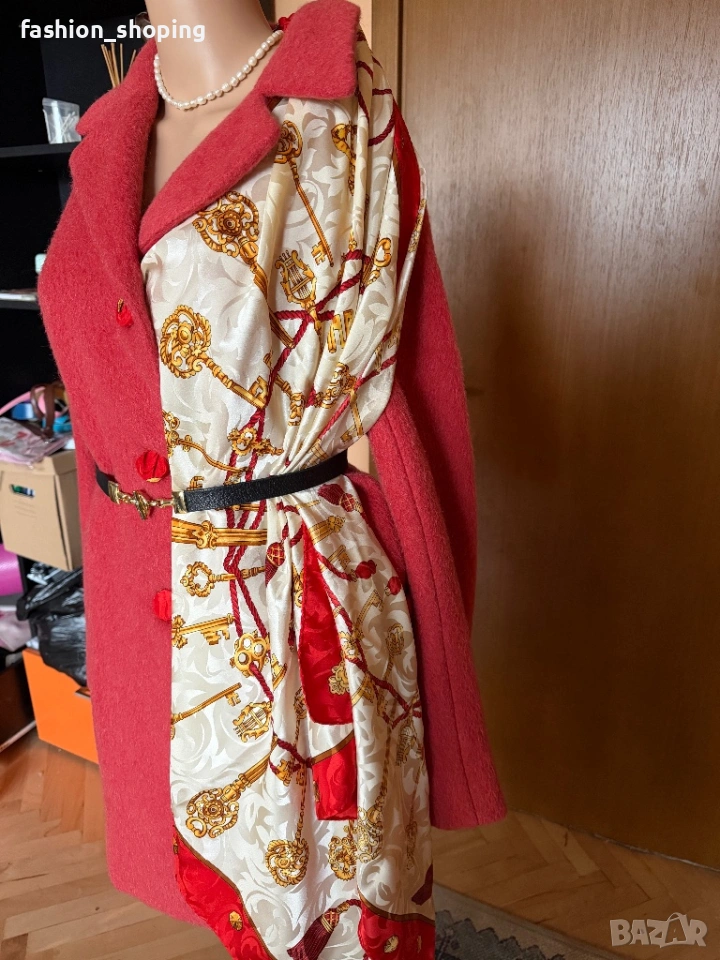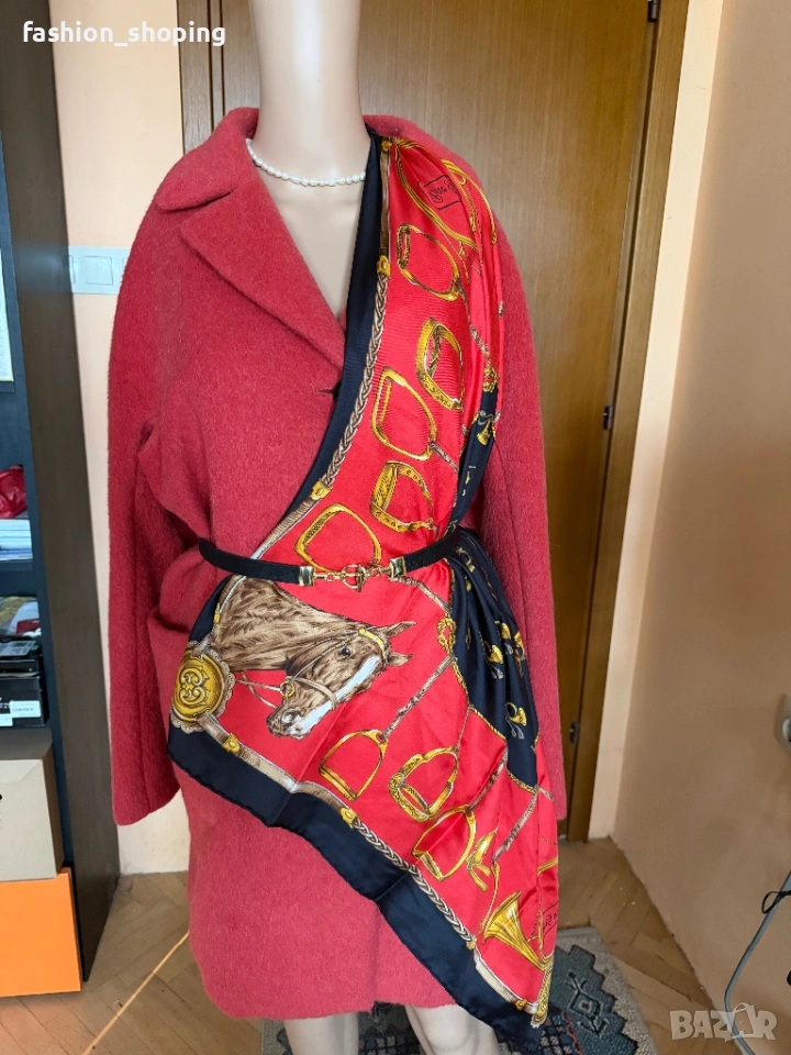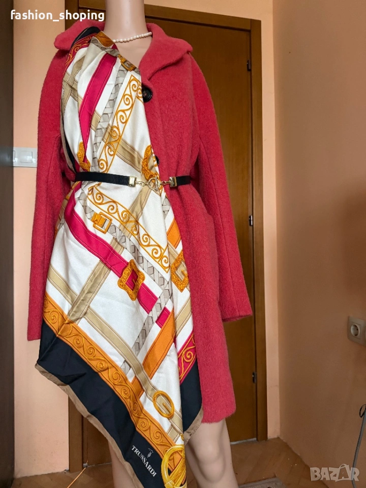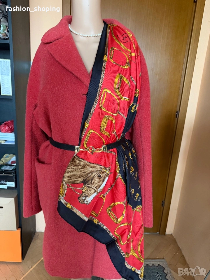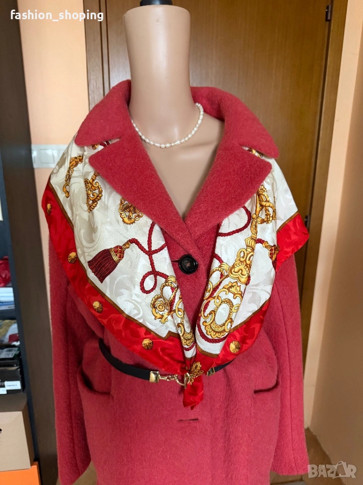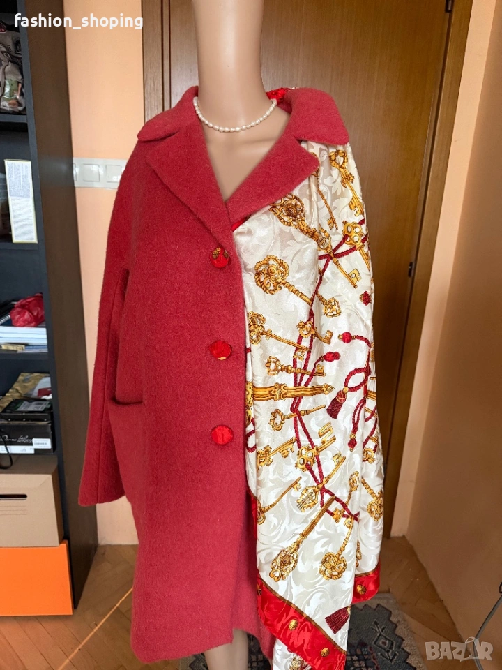 Такова е и това палто в наситен коралов цвят. Моделът е oversize, с два големи ефектни, външни джобове. Материята като всяко палто на Max Mara e признак. На високо качество- вълна, алпака и мохер.Подплата на цялото палто вкл. и на ръкавите.