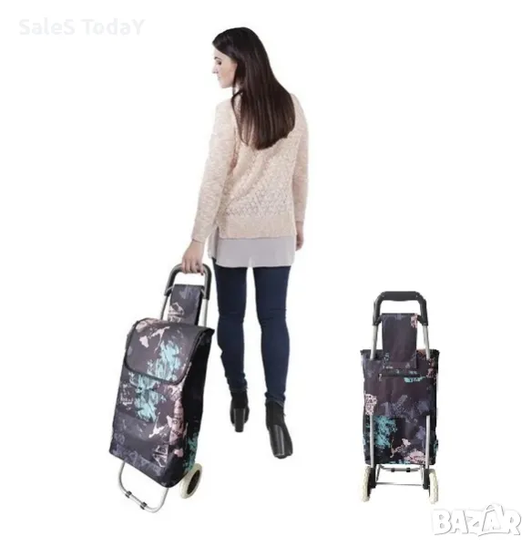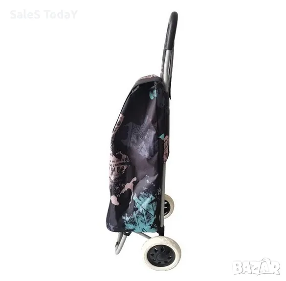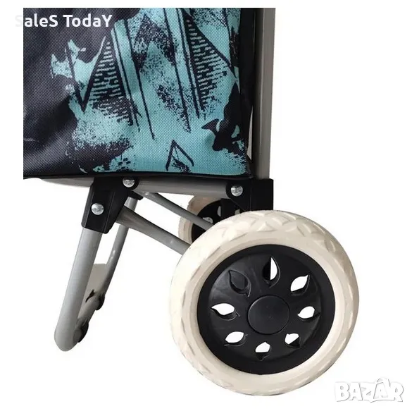 Сгъваема количка за лесно транспортиране и съхранение при пазаруване. Изработена от 600D полиестерна тъкан, има здрава конструкция, PVC подплата и метална рамка. Големите EVA колела улесняват транспортирането. Затваря се с шнур и капачка, а дръжката е с мека подплата, за да предпази ръката ви от изплъзване и изпотяване. Почиства се лесно с влажна кърпа.